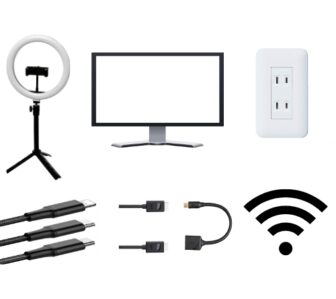 ・エアコン・高速光回線WIFI・充電器(ライトニング・タイプC・usb)・mini Display Port・HDMIケーブル・コンセント充実・USBタップ・快適なリクライニングチェアー・スマホ設置可能リングライト・大きめスタンドミラーなど
