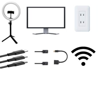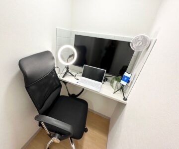 ・エアコン・高速光回線WIFI・充電器(ライトニング・タイプC・usb)・mini Display Port・扇風機・HDMIケーブル・コンセント充実・USBタップ・快適なリクライニングチェアー・リングライト